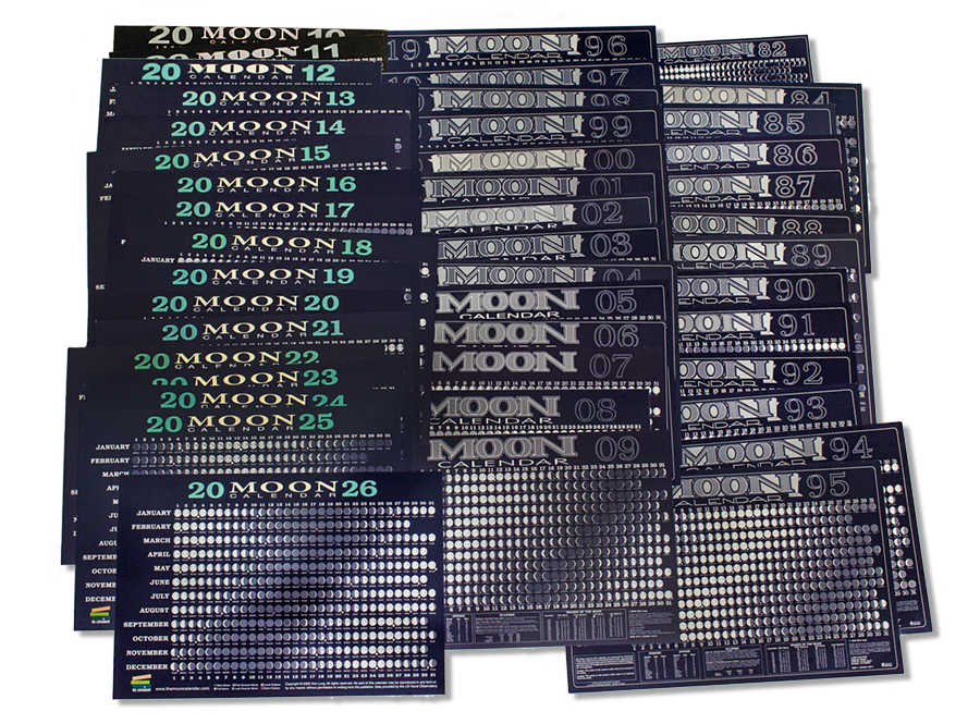 Launched in a small printing in 1981, The Moon Calendar was initially a standard-size poster (20x32 inches). Distributed and sold in rolled form, floor displays for bookstores soon followed. The first publisher was Johnson Books, a small book publisher in Boulder, Colorado, who marketed the calendar widely, including at annual events such as the American Booksellers Association national trade show.